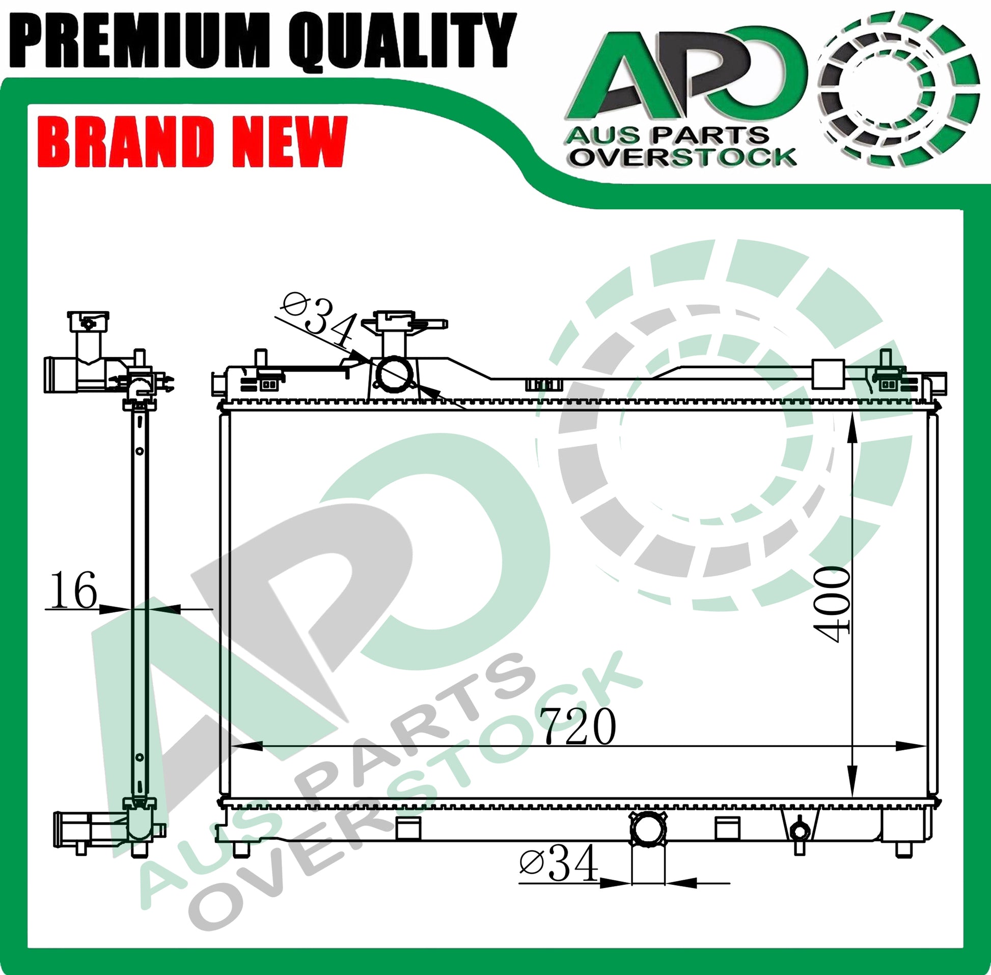 | Size (H x W x T) | 400 x 720 x 16 mm |
